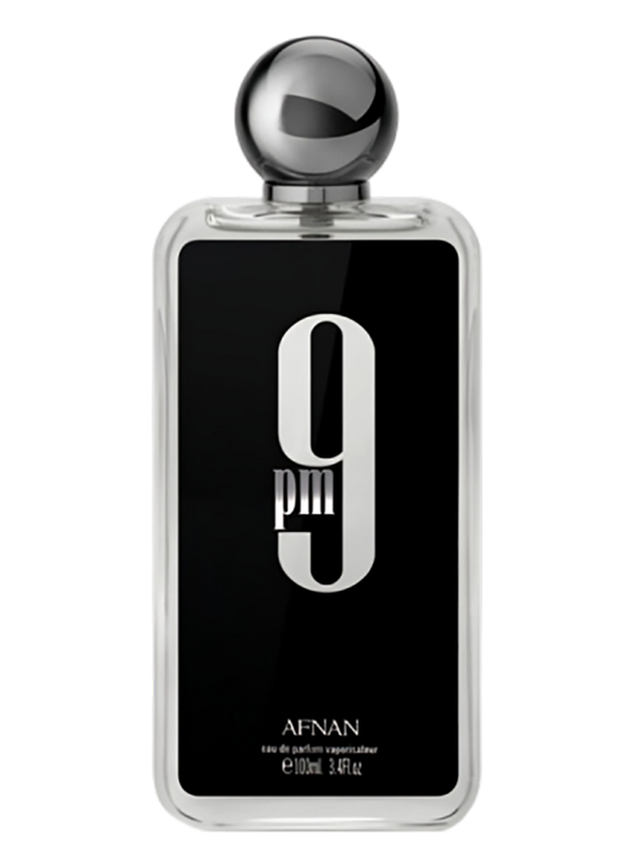 9PM de Afnan es una fragancia oriental avainillada para hombres lanzada en 2020. Se abre con notas vibrantes de manzana, canela, lavanda silvestre y bergamota, ofreciendo una introducción fresca y especiada. El corazón presenta flor de azahar y lirio de los valles, aportando un toque floral y elegante. La base combina vainilla, haba tonka, ámbar y pachulí, proporcionando un final cálido y dulce.